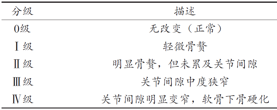 表1 骨关节炎X线的Kellgren & Lawrence分级(K-L分级)