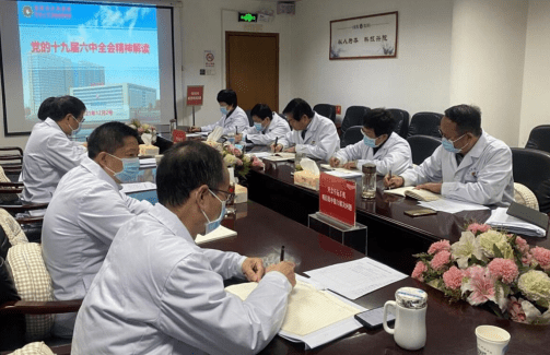 任书伟院长要求,要迅速在全院党员干部职工中掀起学习宣传贯彻党的第十九届六中全会精神热潮,切实用全会精神武装头脑指导实践、锚定既定奋斗目标,在强化党建统领、提高医院管理、改善医疗环境、统筹学科发展、开拓社会公益服务、推进区域医疗中心建设等方面,迈好“十四五”发展第一步,坚决打赢“三甲复审攻坚战”,扎实推进医院高质量发展。