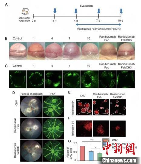 研究团队进一步通过试验证实了新一代的人工合成抗体的有效性、稳定性和良好的亲和力。研究人员分别建立了小鼠角膜和脉络膜新生血管模型,并发现注射新一代抗体药物可有效减少上述两种动物模型的新生血管的面积和体积,且效果显著高于原抗体药物。(完)