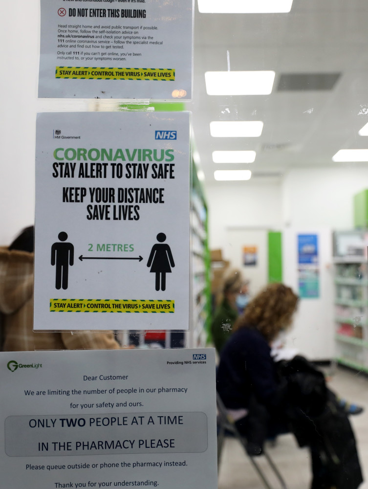12月7日,英国伦敦一家药店外张贴着防疫告示。 新华社记者 李颖 摄