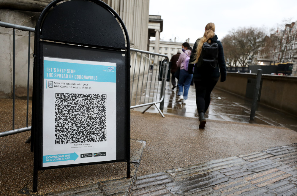 这是12月7日在英国伦敦大英博物馆外拍摄的用于防疫的二维码。 新华社记者 李颖 摄