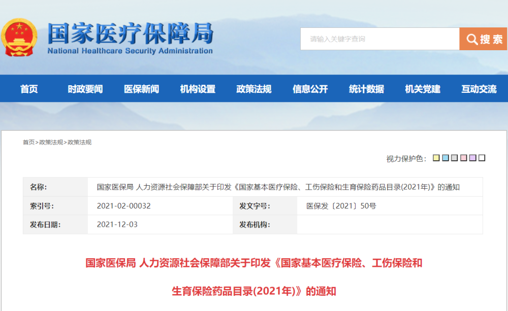 ▲国家医保局、人力资源社会保障部于12月3日印发的《国家基本医疗保险、工伤保险和生育保险药品目录(2021年)》中包含了甘露特钠胶囊。图/国家医保局官网截图