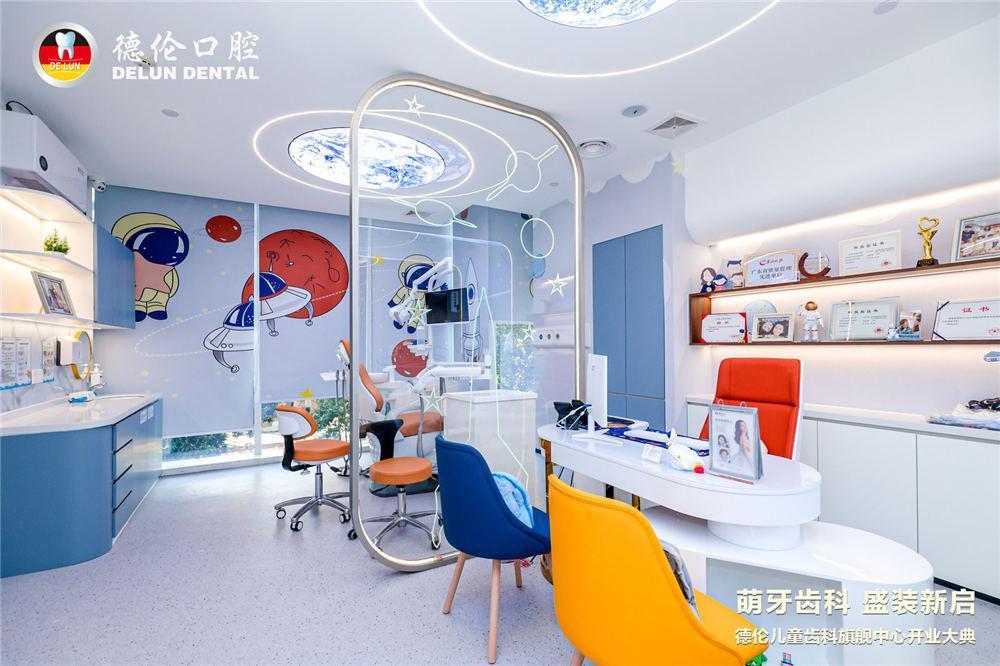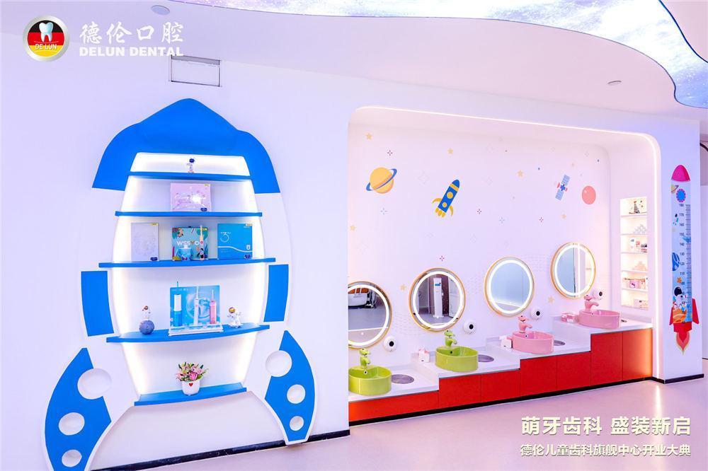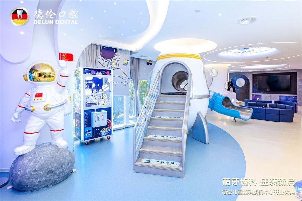 新开业的德伦口腔儿童齿科旗舰中心院内占地面积约1500m ,拥有18个诊室、综合儿童活动区、咨询室、诊室、拍片室等多个功能区域。区别于传统的口腔机构,德伦口腔儿童齿科旗舰中心充分考虑孩子的看牙心理,全新太空遨游主题就诊空间,设有太空闯关乐园、小小牙医游园会等多项游戏环节,设置了多处阅读角,配置超过 200 本的儿童看牙绘本与护眼阅读机,让孩子沉浸式放松看牙,同时还能收获健康知识!诊室内也有小朋友喜爱的动画片,让孩子放松适应,看牙全程寓“教”于治,寓“治”于乐,在游戏中快乐看牙。