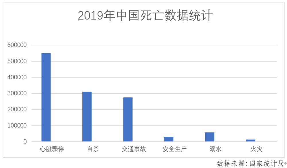 这是一组可怕的数据:在国家统计局公布的2019年中国死亡数据统计中,中国每年因为心脏骤停而死亡的人数约有55万以上,在所有的死亡因素中,心脏骤停致死数量位居第一,远高于因自杀、交通事故等原因导致的死亡。