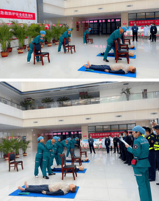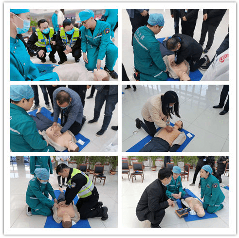 活动当天,南阳东站驻站工作人员100多名参加,在急诊应急办公室刘珂副主任精心的组织安排下,南阳市中心医院院前急救6名医护人员现场演示了单人徒手心肺复苏术、单人海姆立克法、双人海姆立克法、头部外伤止血包扎术、上肢骨折外固定术,杨莹护士长进行了详细的解说。