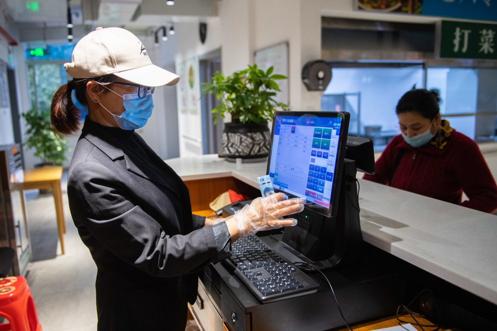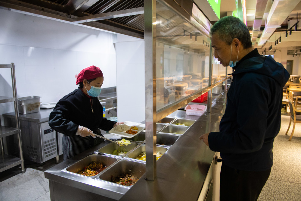“长者大食堂”里的工作人员正在收银。新华社记者陈思汗摄