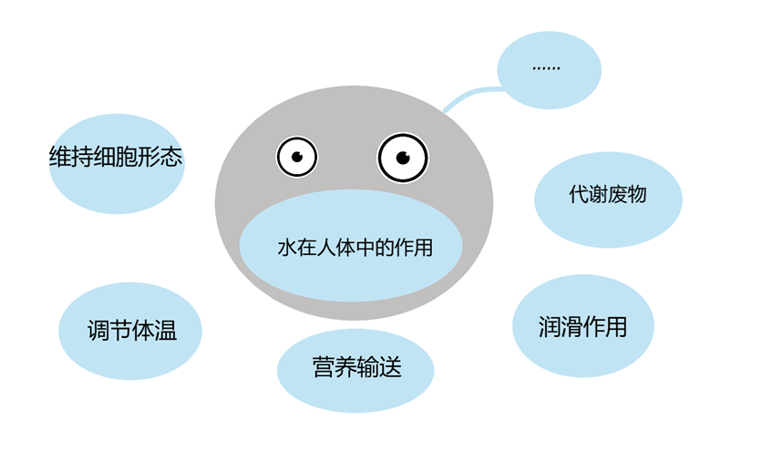 水是人体中含量最多的成分,不同年龄、性别和体型的人,其体内含水量是存在差异的。年龄越小,含水量越多,0~6个月的婴儿可占80%左右,随着年龄增长逐渐减少。主要生理功能详见下图。