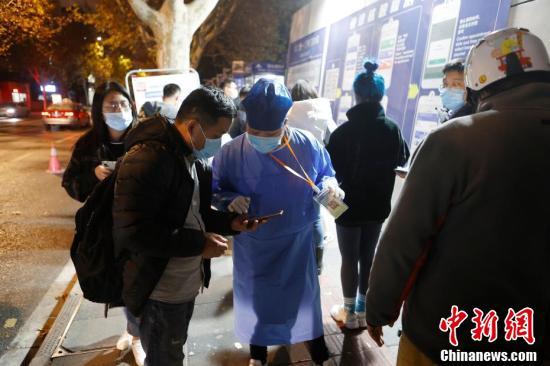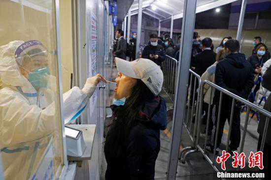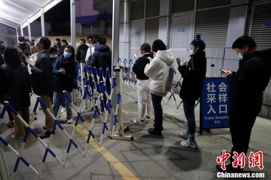 12月8日晚,市民在同仁医院进行核酸检测采样。 为了更好地满足上海市单位或市民“愿检尽检”需求,方便来沪返沪人员加强健康管理,上海市卫健委进一步优化区域布局,扩大核酸检测采样点。目前上海市面向市民提供24小时核酸检测服务的医疗机构增至48家。同时,上海的156家核酸检测机构,单份单管检测能力为每天91万份,可以满足市民的需求。