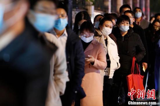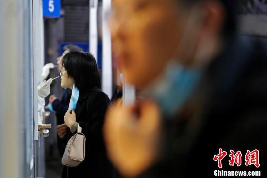 市民在同仁医院排队等待进行核酸检测采样。(殷立勤 摄)