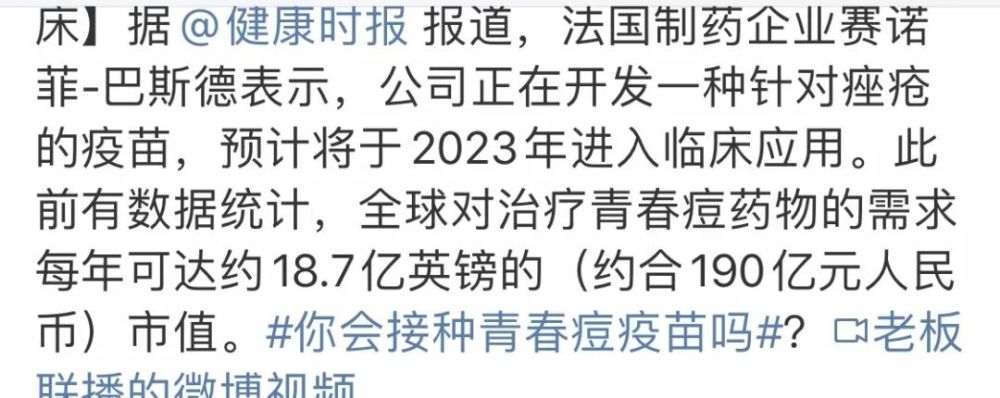 青春痘要有疫苗了,通过抑制痤疮丙酸杆菌的感染,达到预防痤疮发生的作用。