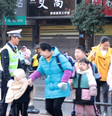 “我自己有三个小孩,两个孩子就在我护学岗的小学读书。我看到小孩子,就特别喜欢,我看到他们就像看到亲人一样,我想他们看到我应该也是同样的感觉。”