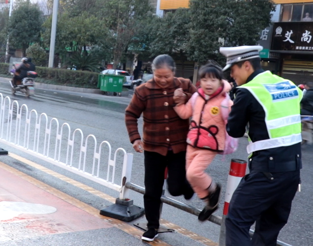 除了帮孩子们过马路,邓苞苞也会帮助拿着大包小包的路人、行动不便的老人,“因为路中间有栏杆,有些人确实抬不起脚。”