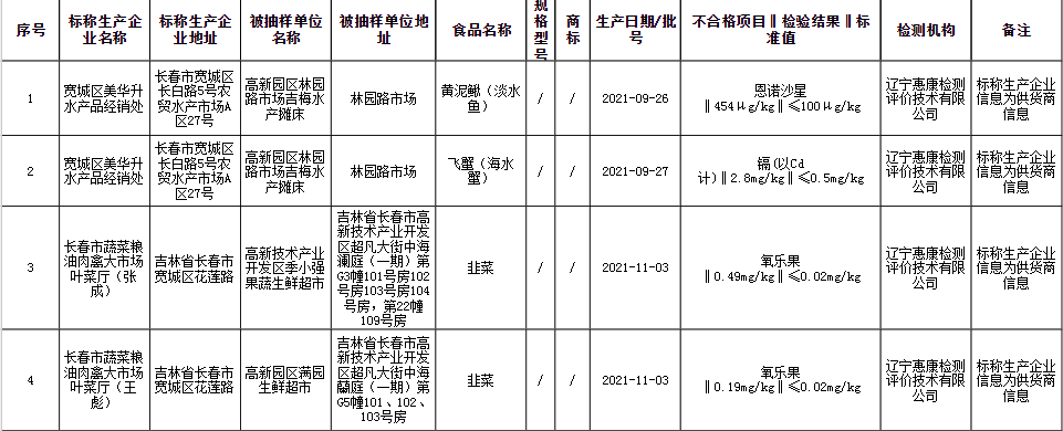 对抽检中发现的不合格产品,长春市市场监督管理局已通报属地市场监管部门依法予以查处。各属地市场监管部门已督促食品经营环节有关单位立即采取下架等措施控制风险。