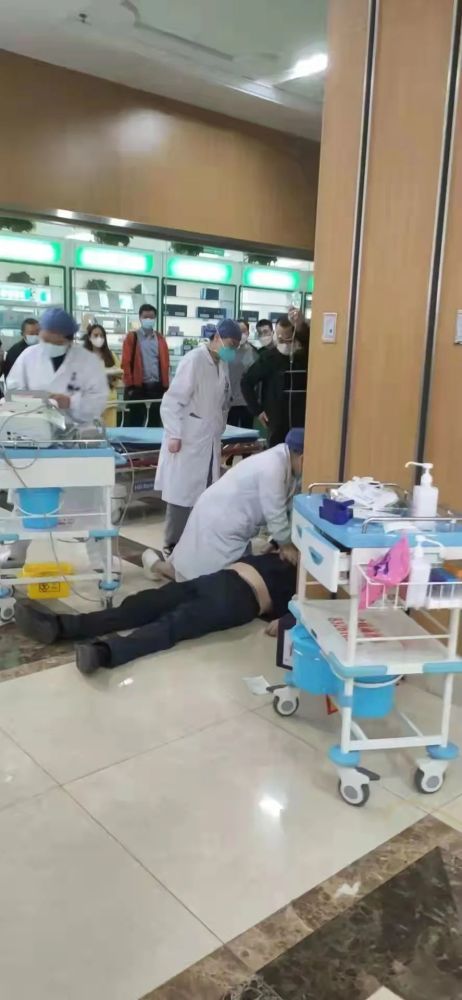 谁知紧急情况发生了!12时10分左右,李先生路过门诊药房时突然倒地不起且出现抽搐症状。一名医学生注意到情况后立刻呼救:“有个患者在药房过道晕倒了!”听闻情况,急诊科王甜甜医生迅速赶到了李先生身边,监控显示,整个过程不到30秒。