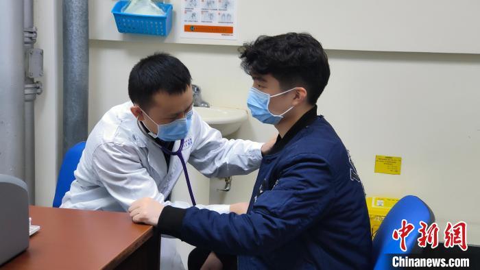 四川省人民医院晕厥门诊医生用听诊器检查患者心脏有无杂音。 陈选斌 摄