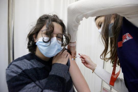 12月6日,一名中学生在黎巴嫩贝鲁特接种疫苗。(新华社发,比拉尔・贾维希摄)