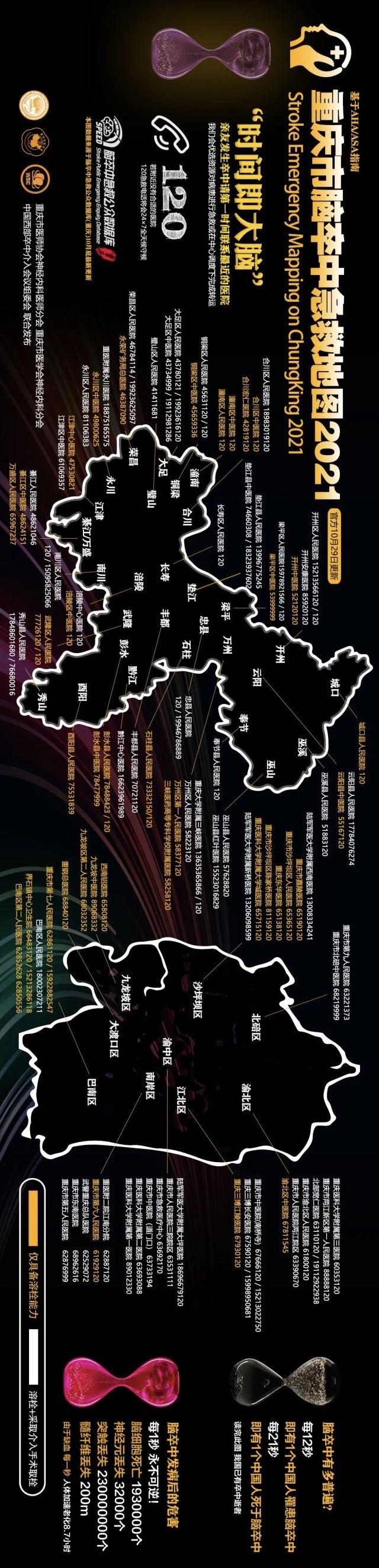 3.看卒中地图。不是所有的医院都可以做治疗,要赶紧查看重庆全市脑卒中地图,要到就近的能做溶栓取栓的医院就医。