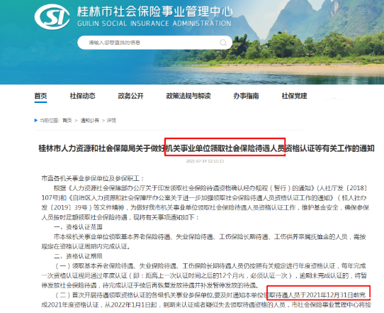广西桂林市要求事退人员要在12月底之前,完成2021年养老金待遇资格认证和年审,否则明年1月起养老金也同样会暂停发放。如下: