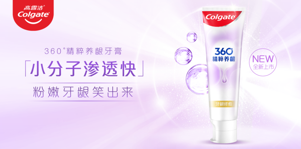 据了解,高露洁360°牙膏是高露洁旗下的王牌产品,畅销国内市场十多年。随着消费市场的升级,为给消费者带来更好的使用体验,高露洁在今年将其全新升级为360°精粹养龈牙膏,更加专注于护龈领域。