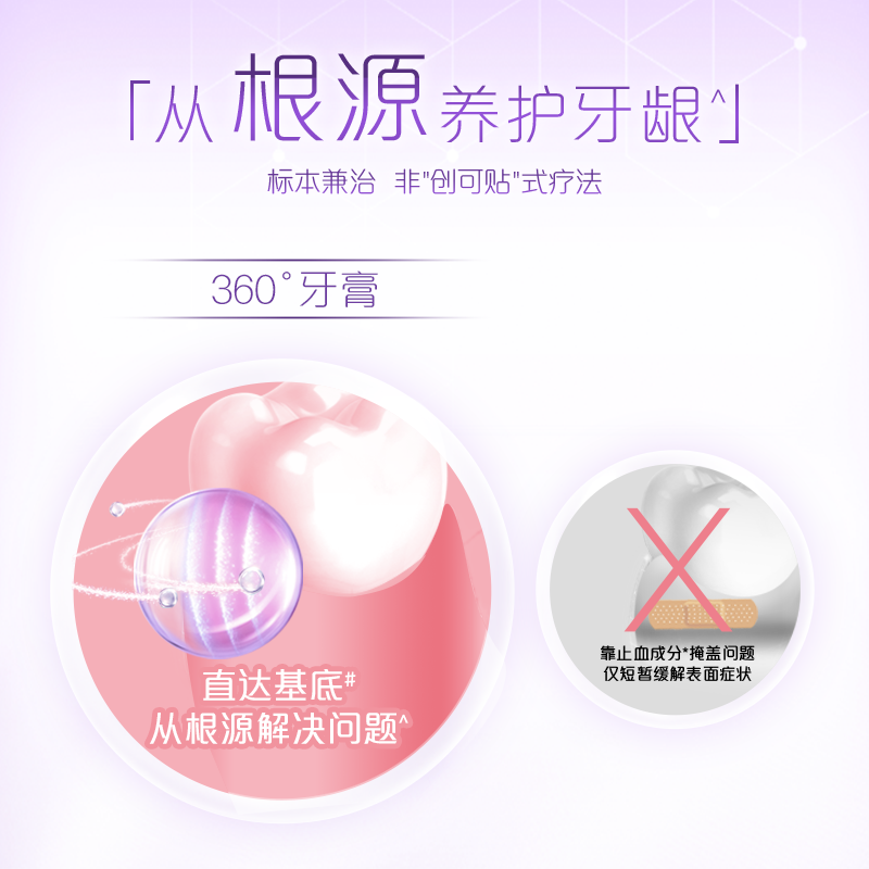 高露洁360°精粹养龈牙膏则是借助小分子成分深入牙龈基底,从根源解决牙龈健康问题,让你告别过去的“创可贴”式疗法。