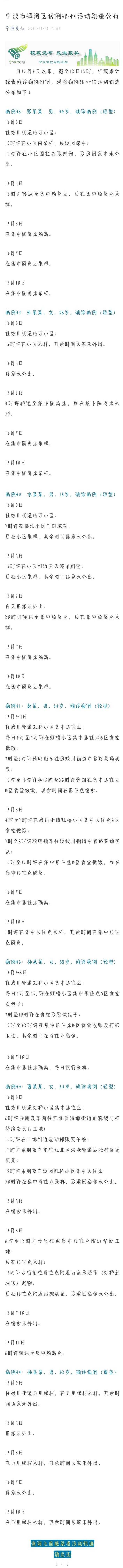 浙江省宁波市刚刚公布确诊38―44活动轨迹。其中多人在宁波市镇海区蛟川街道虹桥小区集中居住点有交集。