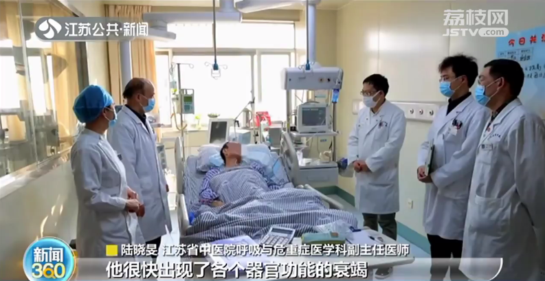 江苏省中医院呼吸与危重症医学科医生介绍:“陈先生很快出现了各个器官功能的衰竭,还做了气管插管,做了床边的肾脏替代。”