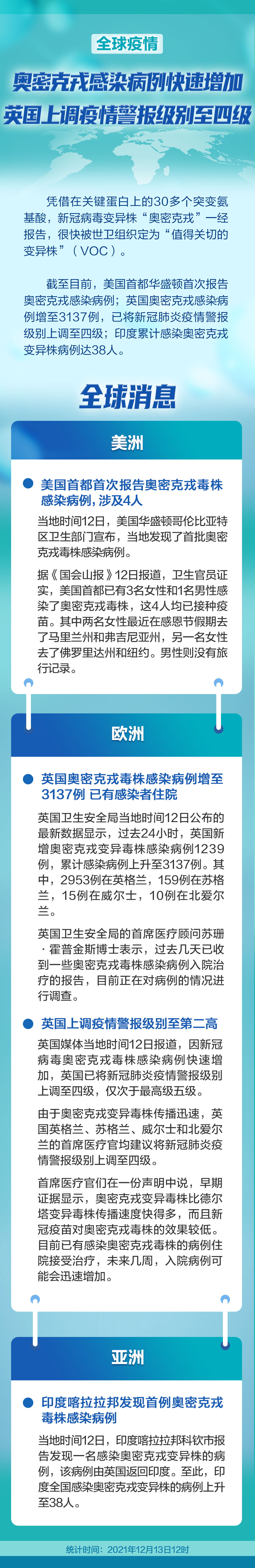 - 全球战疫|奥密克戎感染病例快速增加 英国上调疫情警报级别至四级2021-12-13 14:00:53