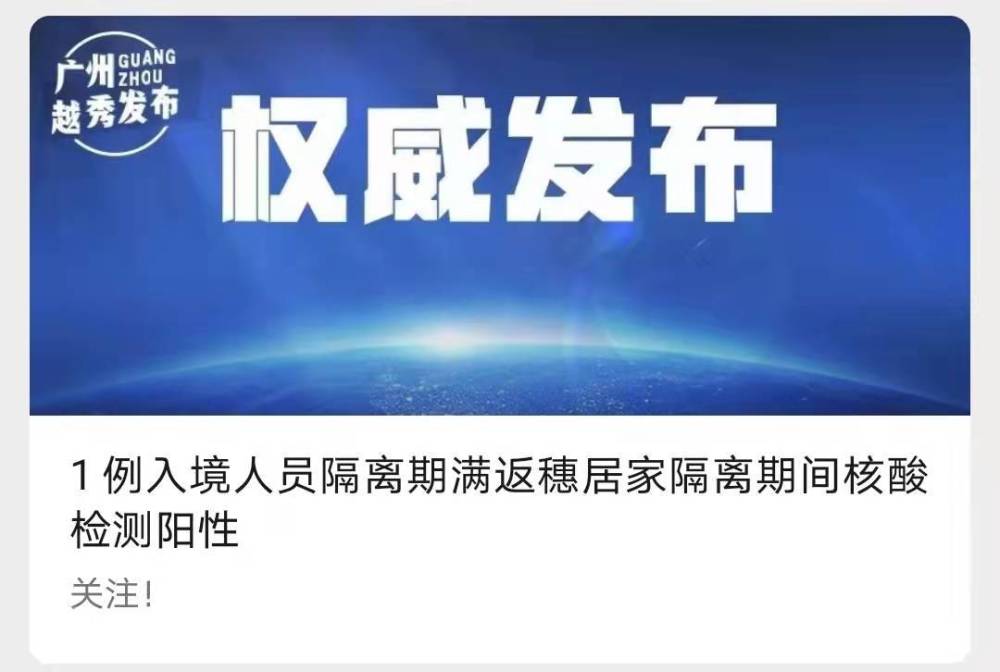 最新!广州通报1例核酸阳性案例,曾从上海入境并完成14天隔离