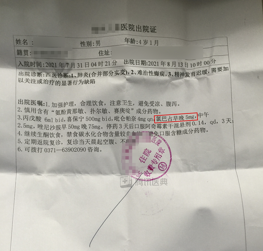 李芳在病友群求购,花七百多元买到一盒氯巴占。她和丈夫都清楚地记得,用上氯巴占后第二天,龙龙的病情得到明显控制,“就感觉他和之前不一样了”。