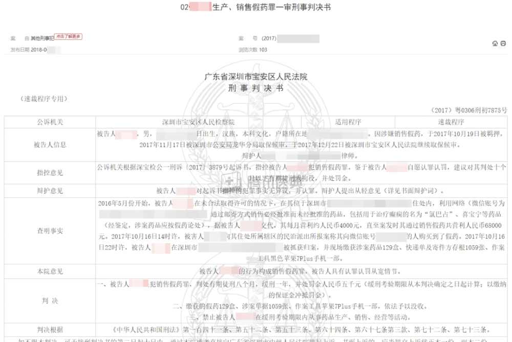 取保后,李芳在网上找到两个同样因为“氯巴占”判刑的案例。两个案例中,被告人均为代购,从国外购买治疗癫痫的药物后出售给他人。