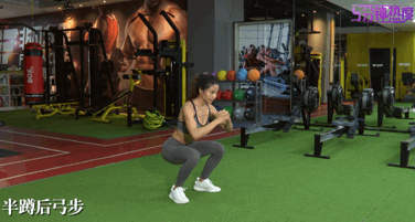 要点:双腿分立,大约肩宽,脚尖与膝盖方向一致,后背挺直,半蹲到膝盖成90度角;左右脚交替向斜后方做下蹲屈膝礼,注意动作过程始终保持半蹲的姿势,不要站起来,感受臀肌发力蹲起;每组60秒,组间休息30秒,完成3组