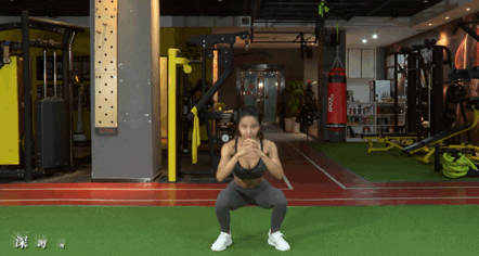要点:双腿分开,站距大于肩宽,脚尖与膝盖朝向一致,后背挺直,大腿蹲到水平或以下,不要俯身过低;双手用力向上摆起,带动身体起跳;滞空时间越久,燃脂效果越好;跳起时,臀部腿部收缩发力明显;起跳时吸气,下落时呼气;每组60秒,组间休息30秒,完成3组