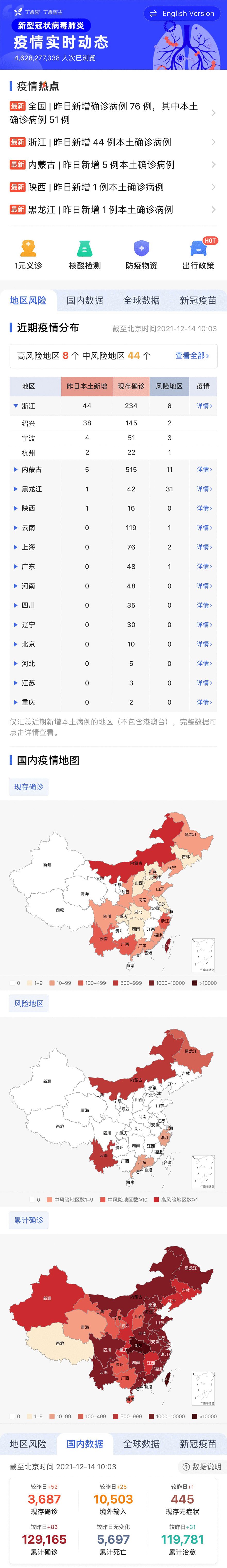 12 月 13 日 0~24 时,31 个省(自治区、直辖市)和新疆生产建设兵团报告新增确诊病例 76 例。