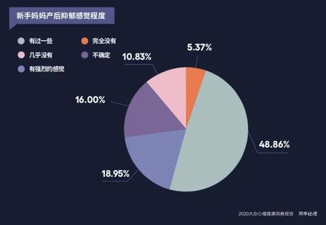 简单心理《2020大众心理健康洞察报告》列举了新手妈妈负面情绪的主要来源,其中: