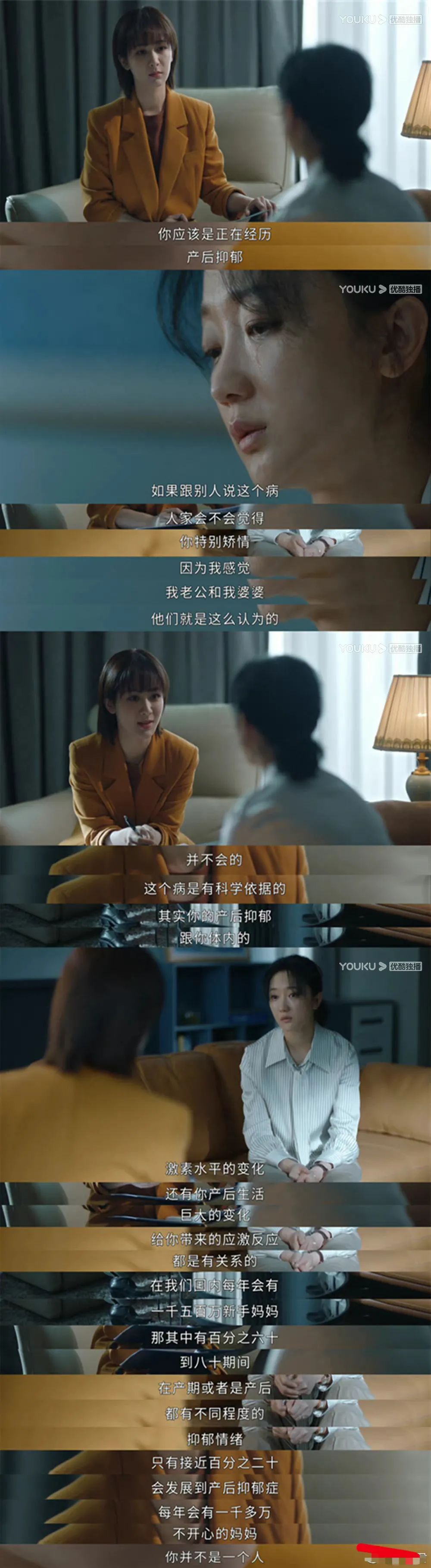 最终,张涵鼓足勇气和爸妈说出“我可能得了产后抑郁”,换来的却是妈妈“有什么抑郁的?我看你就是作!”的回应,爸爸更是鄙视她“用下三滥的方法威胁你妈”。