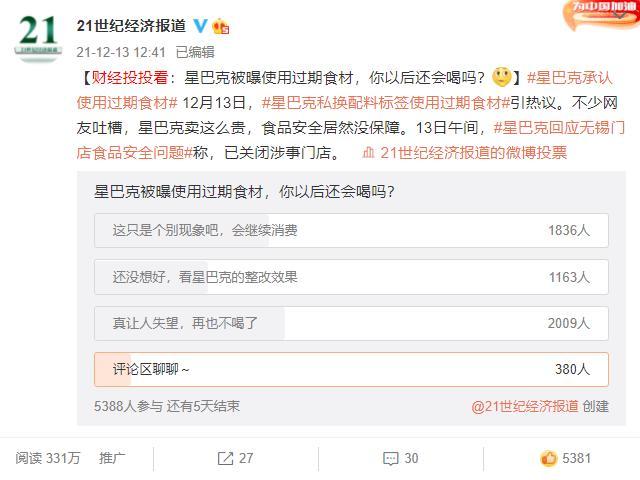 - 精明的星巴克,正倒在“食品安全”的红线上2021-12-15 10:00:48