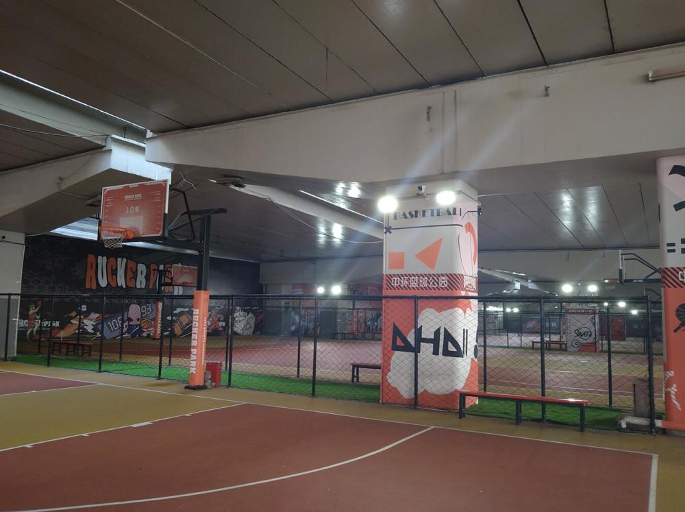 该篮球公园坐落于中环高架桥下,由原废品回收站与垃圾清运站改造而成。如今,这座实现了24小时智能自助运营的场馆已经得到了许多市民的青睐。