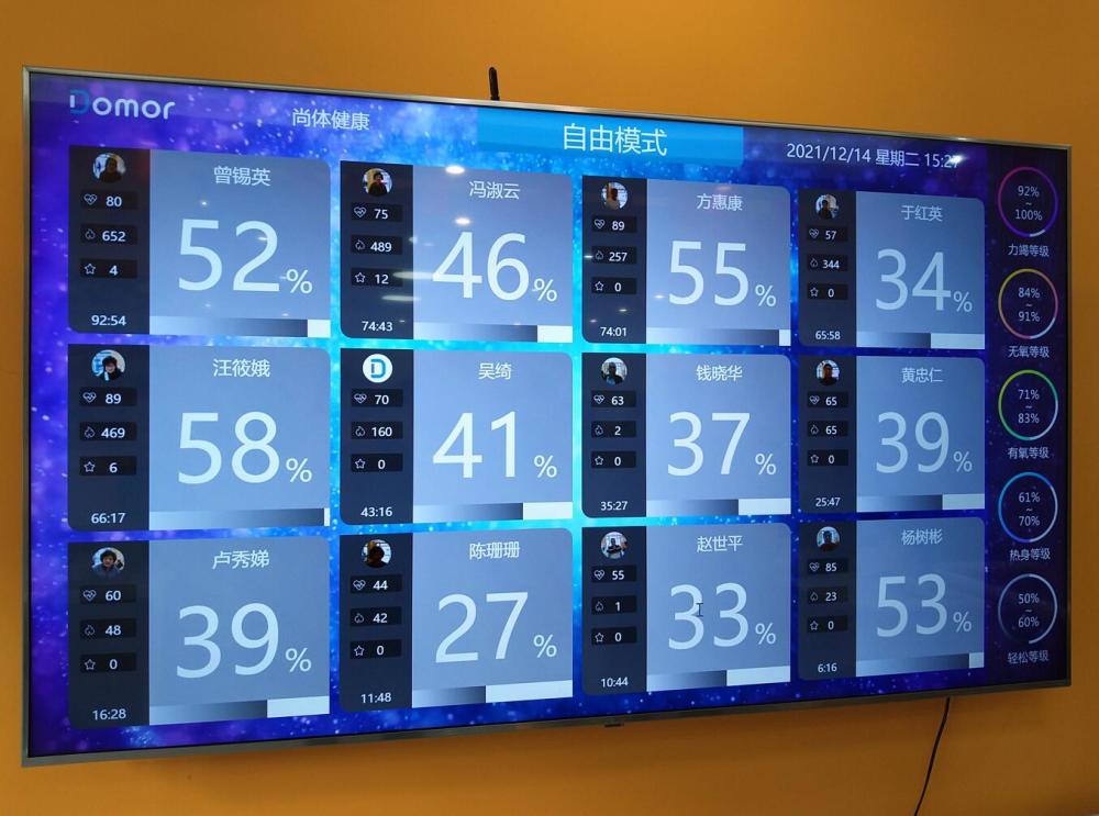 位于长宁区的虹桥街道长者运动健康之家,就开在方便居民抵达的小区内,同时还配备了多种高科技设备:入会的老人将会建立健康档案,根据身体条件由运动健康师设计锻炼方案。在运动时,老人还会佩戴心率检测带,实时通过屏幕监测心率,调整合适的运动强度。