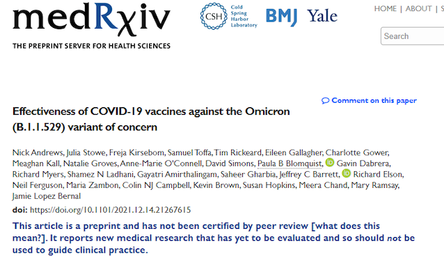 12月14日,medRxiv(医学研究论文预印本发布平台)上传了多篇关于新冠疫苗接种者血清中和试验的论文,目前尚未通过同行评审。其中包括英国卫生局尼克安德鲁斯等发表的论文“Effectiveness of COVID-19 vaccines against the Omicron (B.1.1.529) variant of concern”( COVID-19疫苗对奥密克戎变体的有效性)。该论文分析研究了完成两剂接种BNT162b2(辉瑞与BioNTech联合开发的新冠疫苗)以及一剂ChAdOx1(牛津大学腺病毒载体新冠疫苗)的血清中和Omicron变体情况。研究者发现,对Omicron 变体的症状性疾病没有提供或提供有限的保护。不过,研究者同时发现,任何一种新冠疫苗在加强接种后,对于Omicron的保护作用都有显著增加。