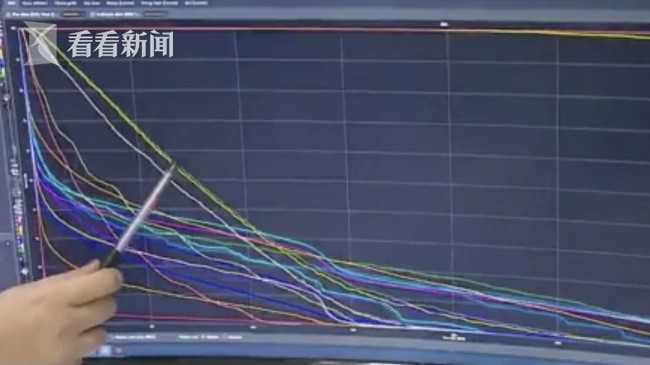 这幅"DVS图",验证了何先生"放射治疗剂量"与"既定规划剂量"完全相符。图中的每根曲线都对应了一个组织,y轴代表照射剂量,x轴代表照射时间。何先生的DVS图中,代表"垂体瘤"的红色线条在治疗期间一直稳定地接收着最高剂量射线;其余代表内耳、视神经、脑干等组织的线条都置于下方的剂量安全区内,说明质子治疗装置精准打击病灶的同时,又让周边20多个组织几乎不受影响。