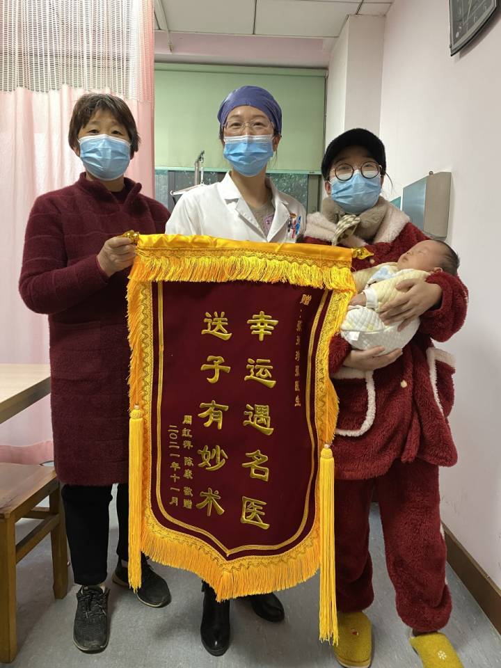 “终于把这一面欠着的锦旗送来了,”昨日,李先生一家带着新生宝宝来到钱报小时健康小站,杭州文晖街道社区卫生服务中心,将一面印有“幸运遇名医,送子有妙术”的锦旗交到了妇科主任张娅珍医生手里。