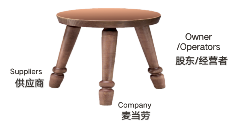 麦当劳供应链的成功,离不开三大巨力:伙伴巨力、系统巨力和品质巨力。伙伴巨力,即麦当劳的“三脚凳伙伴关系”。三脚凳伙伴关系是麦当劳文化的基础,另外两位“好”伙伴分别是麦当劳餐厅的经营者/被特许人和麦当劳的供应商。三脚凳合作伙伴关系中,希望每一位成员都为系统和群体的长远利益去思考和行动,麦当劳倡导与供应商共同发展,推动共赢。