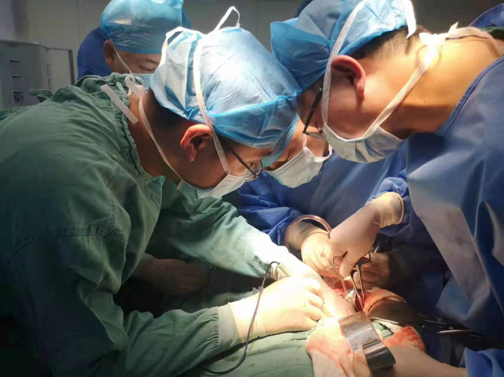 手术当天,市七院胃肠肛肠胸外科主任李培林主刀、胡连杰副主任医师密切配合,刘安彬副院长、泌尿外科肖德主任亲自上台操作指导,同时在麻醉科杨沁岩主任、黄立主治医师等相关科室密切配合下,用时150分钟,成功为患者切除了腹膜后巨大肿瘤。