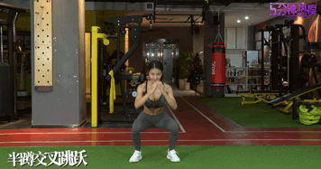 要点:收起双手,双脚分开大约1.5倍的肩宽,下蹲幅度是深蹲的一半,臀腿发力向上起跳,跳起后两腿交叉点地,迅速下蹲;下蹲吸气,跳起呼气;上升阶段整体发力向上跳,下落阶段顺势下蹲做缓冲,保持动作节奏,不必太快。每组12次,组间休息30秒,目标完成3组练习