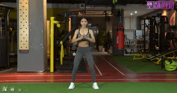 要点:双腿宽距打开,脚尖朝外;前平举手臂,下蹲直到你的臀部就在你膝盖的高度,确保你的膝盖不过脚趾,宽距深蹲起来的时候,臀肌发力向左方抬左腿,抬到尽可能的高度,放下后再进行深蹲起的训练,换成右脚向外侧踢;动作过程均匀呼吸,左右腿部交替进行,各12次,组间休息30秒,目标完成3组练习