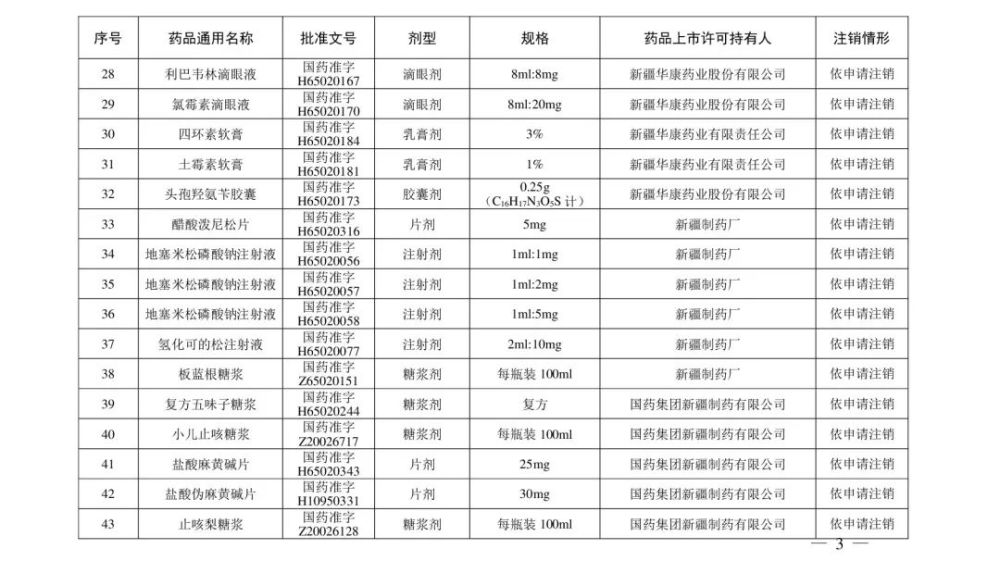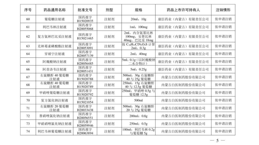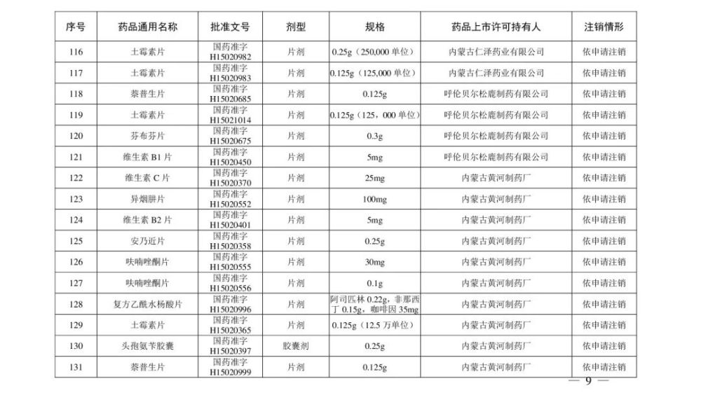 《注销药品注册证书目录》显示