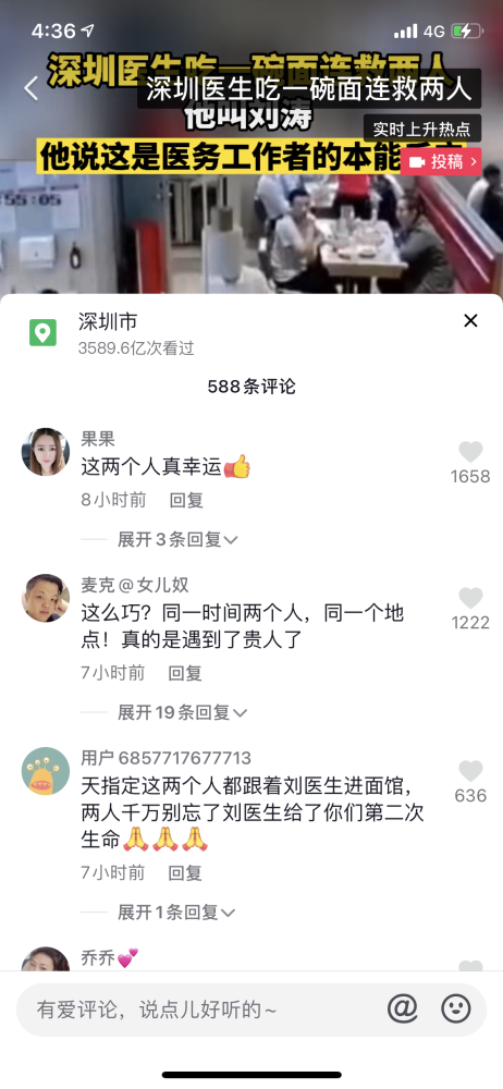 这两天,一段深圳医生下班后吃一碗面连救两人的视频在网络上广为流传。