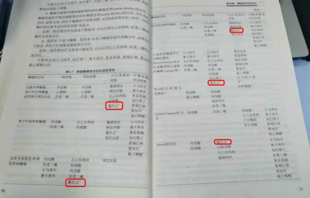 在中国抗癫痫协会编著的 2015 版临床诊疗指南癫痫分册中,将氯巴占纳入了多种癫痫综合征的「添加药物」和「可以考虑的药物」类别中。