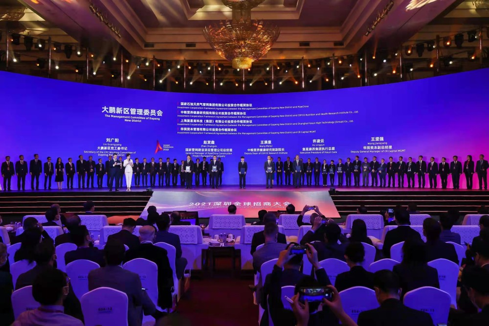 大鹏新区相关负责人介绍,此次大会,大鹏新区现场签约4个重大项目,分别为国家石油天然气管网集团有限公司深圳LNG项目、中粮营养健康研究院有限公司国家健康食品技术创新中心项目、上海复星高科技(集团)有限公司健康文旅综合体项目、华润资本管理有限公司度假商业综合体项目。投资主体均为世界500强、中国500强和大型国企。