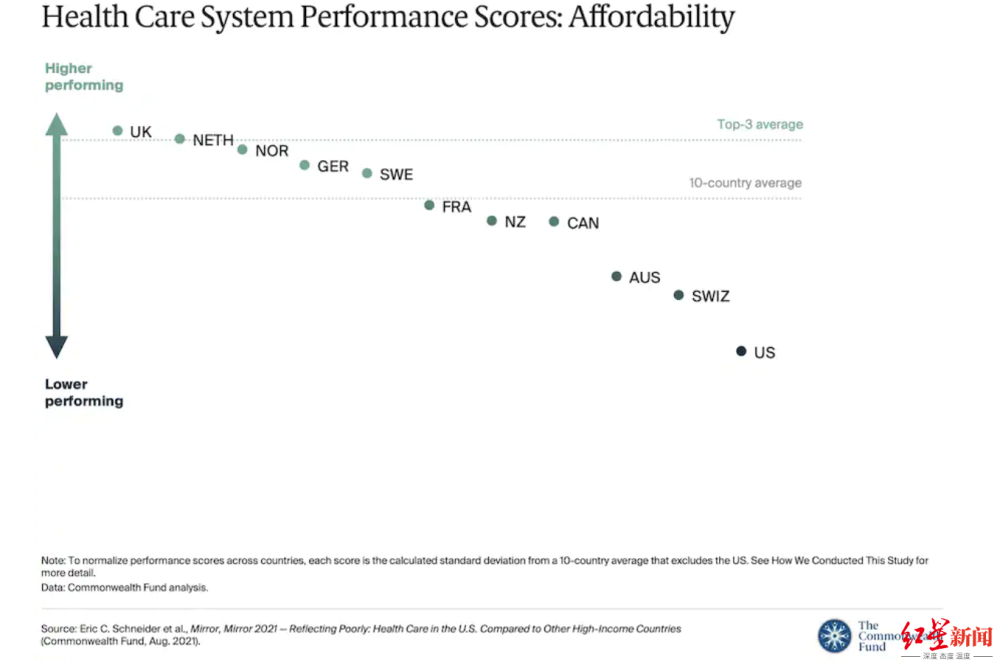 ▲医疗保健系统表现排名(基于居民的支付能力),美国在11个高收入国家排名垫底,图据美国联邦基金。